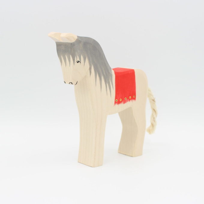 Das Pferd ist heute besonders fein herausgeputzt. Es trägt einen wunderschönen roten Sattel. Heute ist Weihnachten und es darf den Schlitten des Nikolaus ziehen, auf dem die Geschenke der vielen braven Kinderlein liegen. Artig zieht das Pferd den schweren Schlitten. Zur Belohnung bekommt es vom Nikolaus und dem Knecht Ruprecht Äpfel und Möhren.